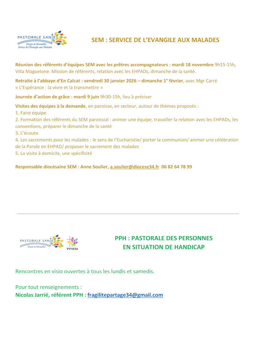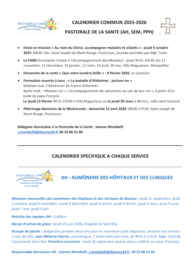 PASTORALE DE LA SANTÉ (AH, SEM, PPH) – CALENDRIERS