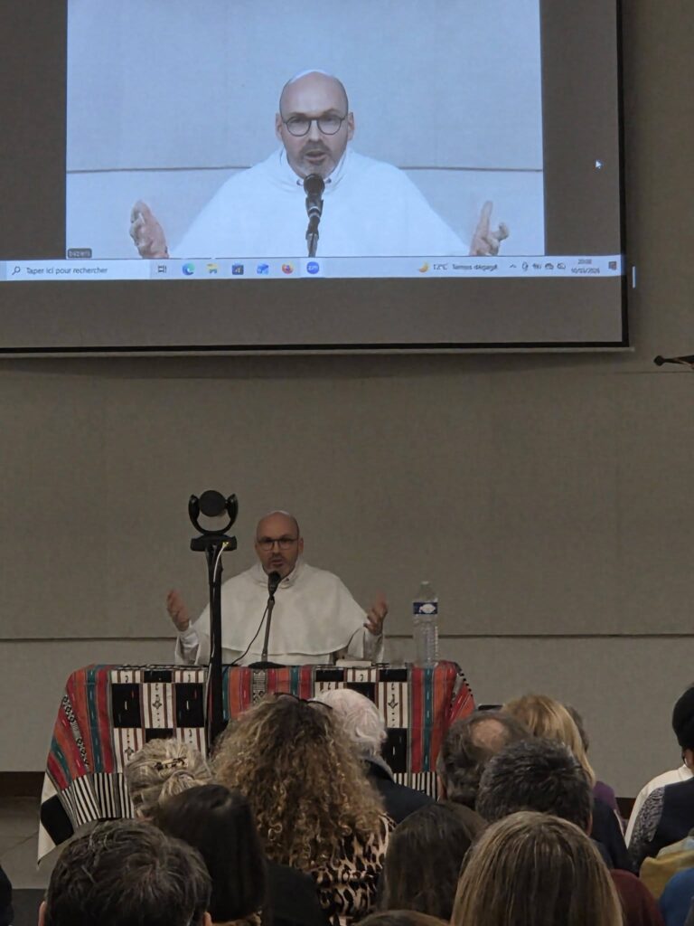 En partant à la fois des réseaux sociaux, mais aussi en jumelant sa réflexion avec les Pères de l’Église, le dominicain a tenu en haleine le public présent. Un public bien attentif dans lequel se trouvait au premier rang Mgr Jean Louis Brugues , résidant à Béziers archiviste et bibliothécaire émérite de la Sainte Église, lui-même dominicain.