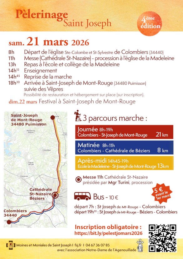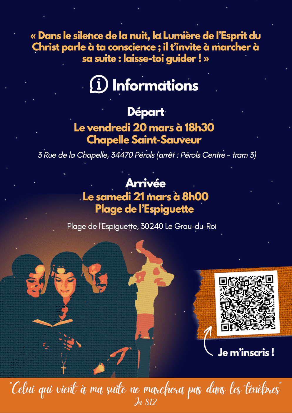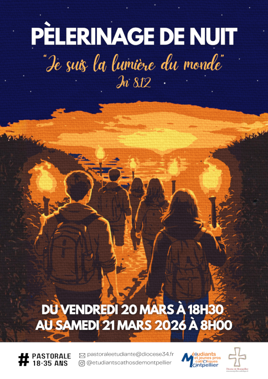 Inscription : https://www.helloasso.com/associations/association-diocesaine-de-montpellier-ad34-pastorale-etudiante/evenements/pelerinage-de-nuit-20-21-mars-2026