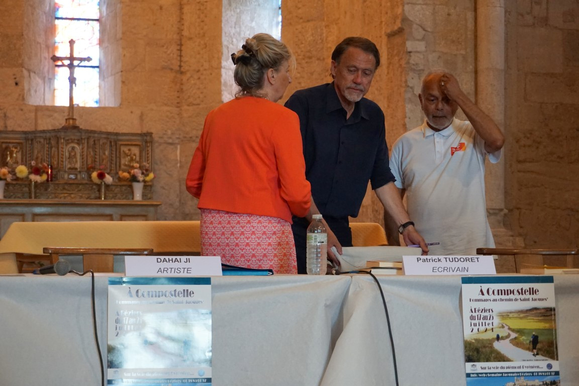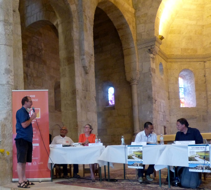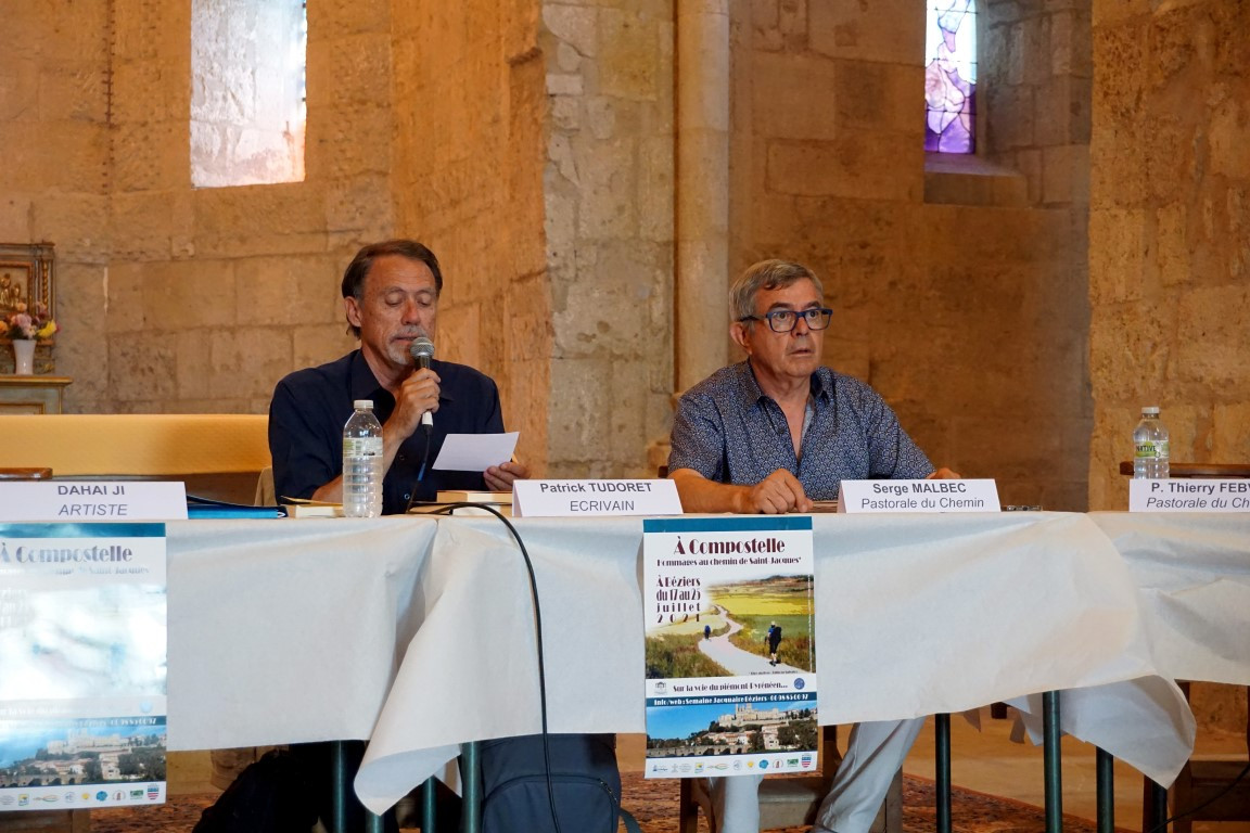 En préambule il fait part de son ébahissement devant cette semaine jacquaire à Béziers, et de ce qu’il a pu partager ce samedi 24 au soir (repas, karaoké, ambiance de quartier) et ce dimanche 25 juillet (circuit historique de 6 km, discussion avec de nouvelles connaissances, élargissement de son réseau de relations). Il adresse tous ses remerciements et sa reconnaissance aux organisateurs et aux petites mains.