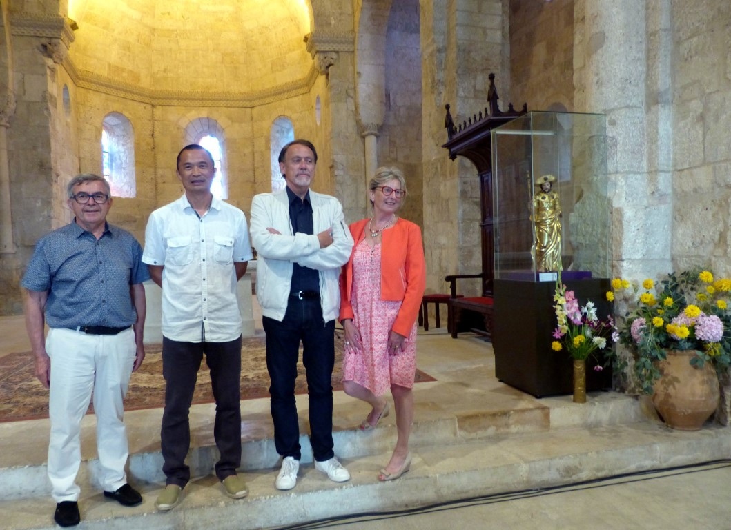 Bénédiction de la statue de Saint Jacques de Compostelle en pèlerin, XVIIIème siècle en bois et stuc peint, métal, provenant de la collection des Musées de la Ville de Béziers. Suivie du verre de l’amitié, servi dans le jardin derrière l’église, offert par la municipalité.