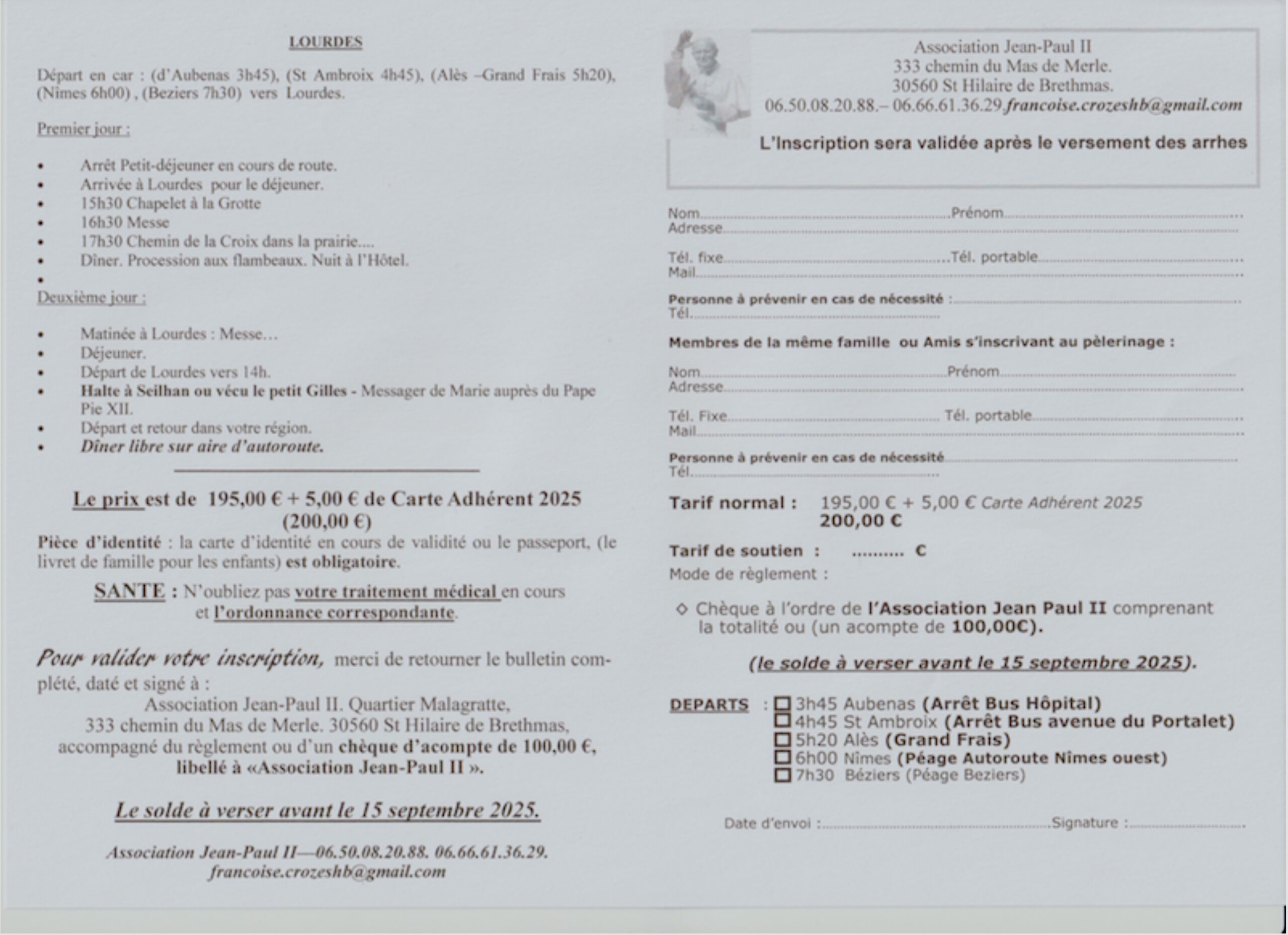 Aujourd’hui j’ai fait ce voyage pour venir te voir afin que tu m’aides à ne pas perdre la vue et aussi que tu aides tous les autres gens de la terre. Je te salue Marie et te bénis de tout mon cœur.